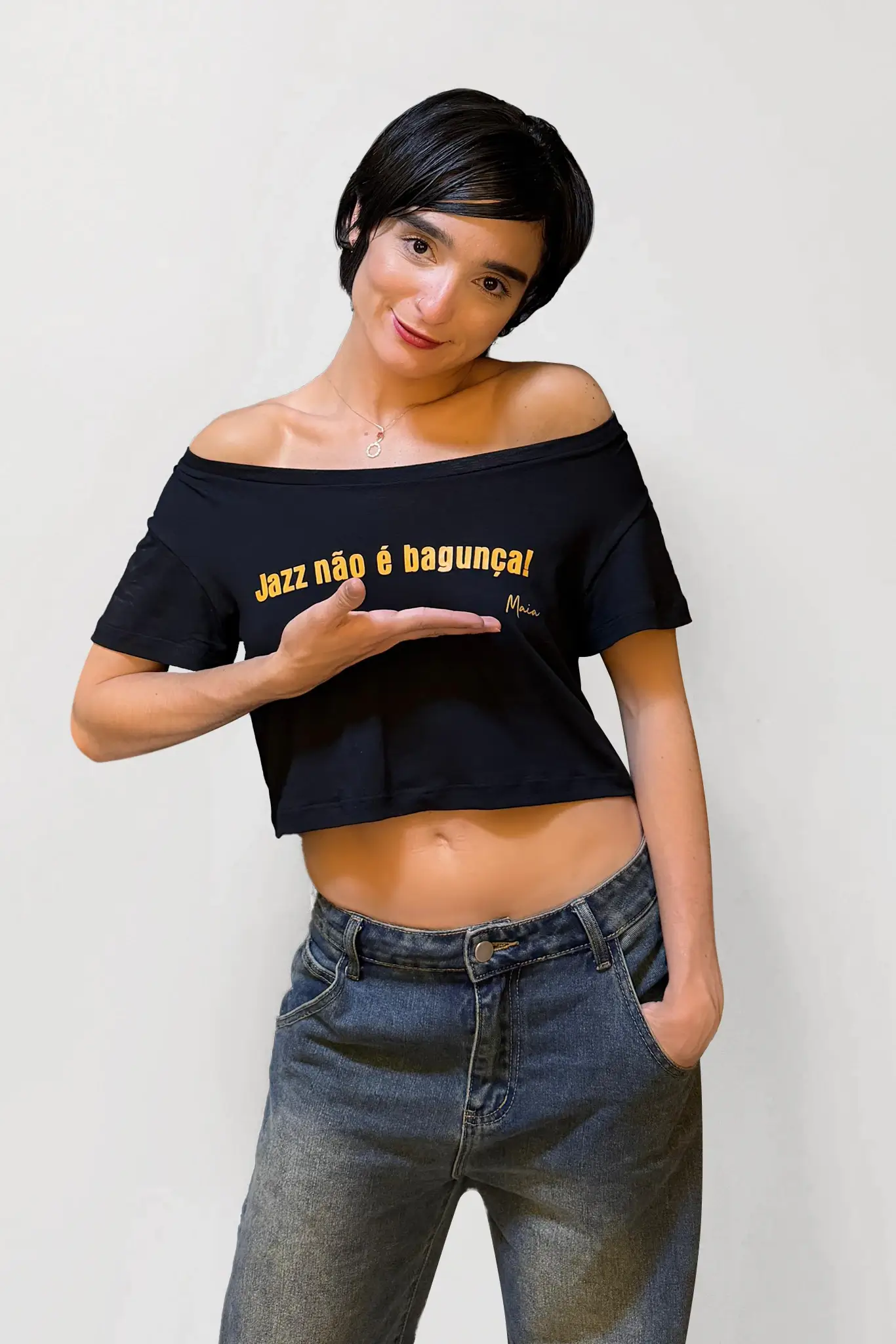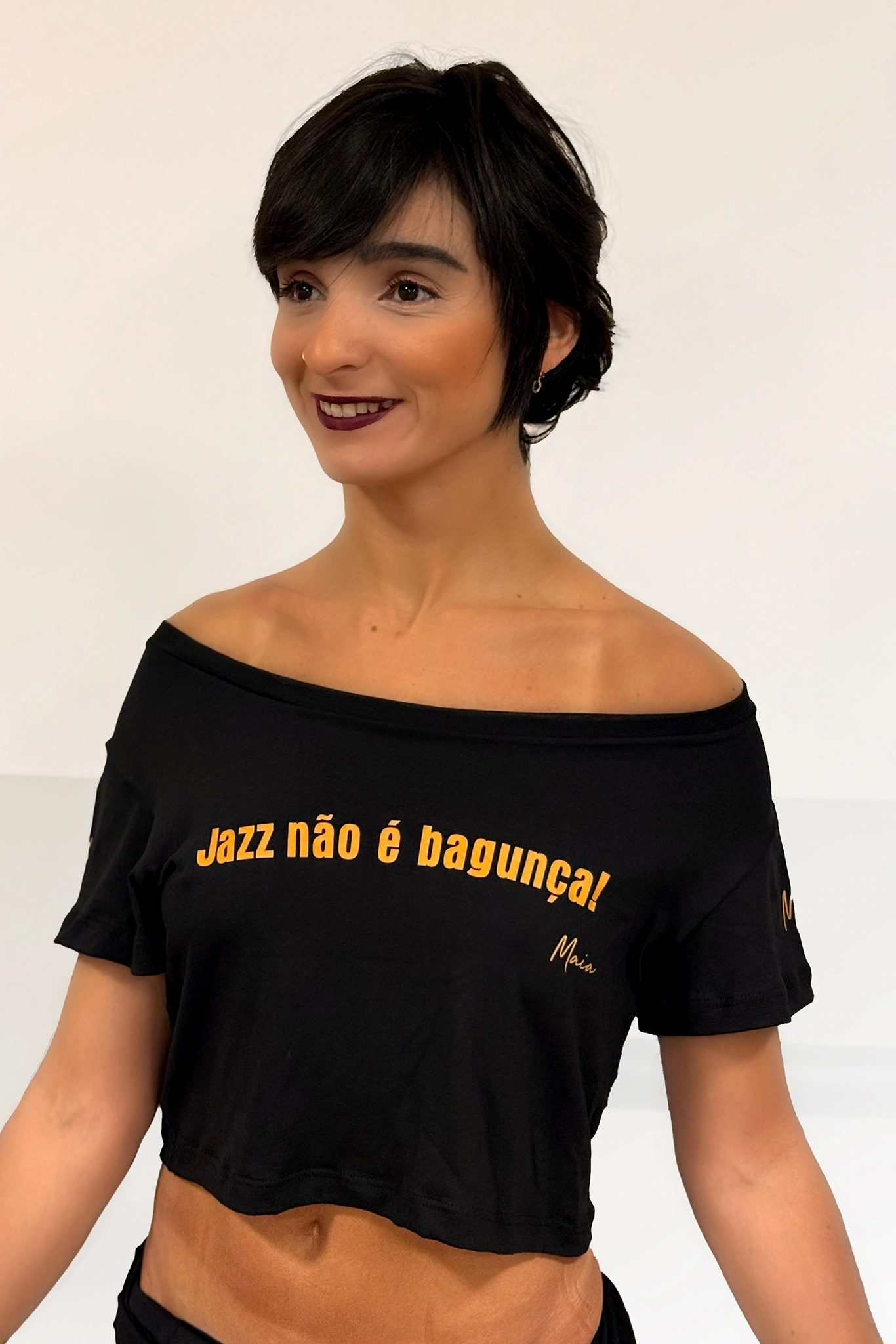 Com corte moderno e toque macio, o cropped proporciona liberdade de movimento sem abrir mão do estilo. Ideal para ensaios, performances ou para levar o espírito do jazz ao seu dia a dia.